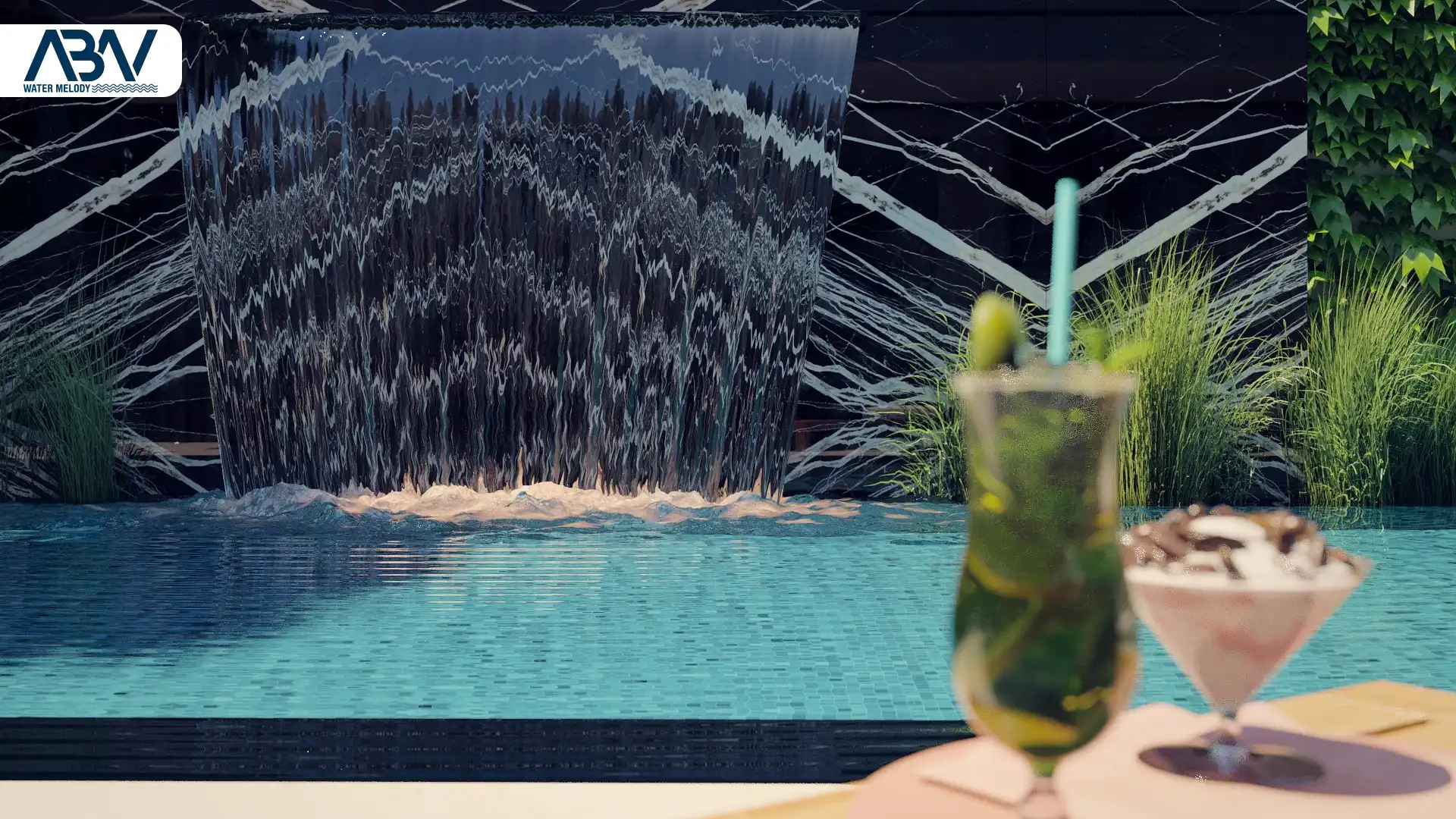 آبنماهای فوارهای یا پردهای در ورودیها یا پاسیوها، جلبتوجه کرده و تجربهای لوکس برای مشتریان فراهم میکنند. استفاده از کلرزن نمکی و فیلتراسیون شنی، آب را در این فضاهای پرتردد بهداشتی نگه میدارد.