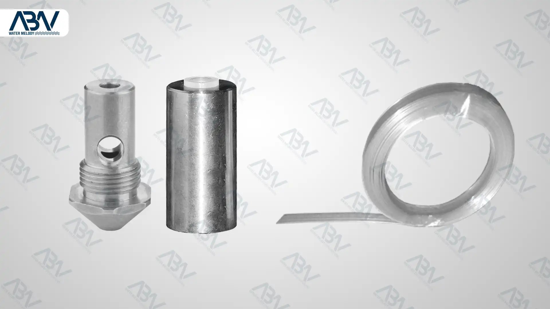 نازل آبنما نواری: نازلهایی که بر روی کلکتور متصل میشوند و نوار مایلر از درون آنها به سمت پایین میرود، با نازل های کمت متفاوت میباشد و دارای دهانه بزرگتری هستند. توجه داشته باشید که استفاده از نازل کمت سبب رسوب گیری سریع آبنما و از کار افتادن آن میشوند.