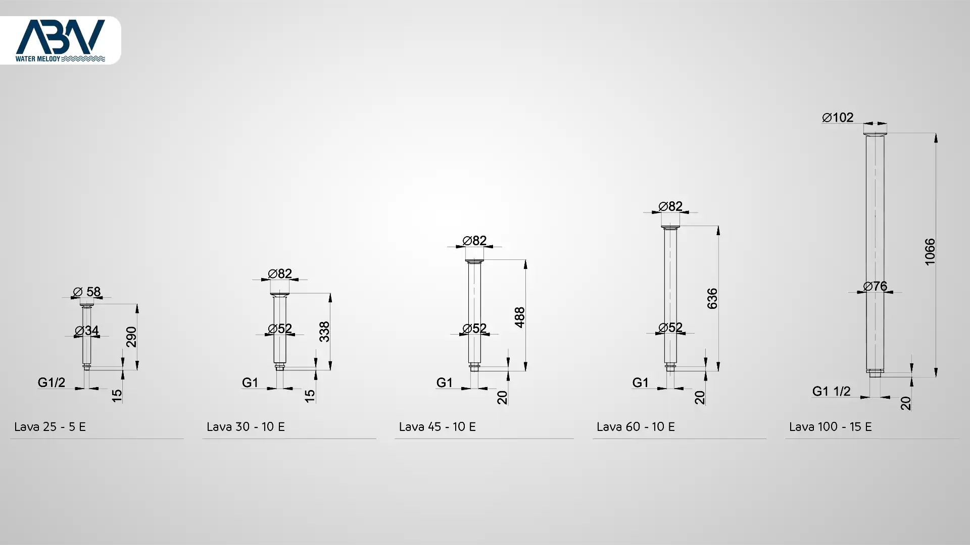 | Fountain diameter [mm] | Lava 25-5 E | Lava 30-10 E | Lava 45-10 E | Lava 60-10 E | Lava 100-15 E | |||||